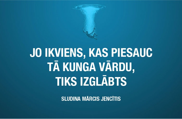 “Jo ikviens, kas piesauc Tā Kunga Vārdu, tiks izglābts.” (Romiešiem 10:13)Šai Rakstu vietai Bībelē var atrast paralēles, pirmā no tām ir Vecās Derības Joela grāmatā.“Tad notiks, ka izglābs sevi ikviens, kas piesauks Tā Kunga Vārdu.” (Joela 3:5)“Un ikviens, kas Tā Kunga Vārdu piesauks, tiks izglābts.” (Apustuļu darbi 2:21)Šī Rakstu vieta no vēstules romiešiem ir tā, kuru es dzirdēju Latvijas Kristīgajā